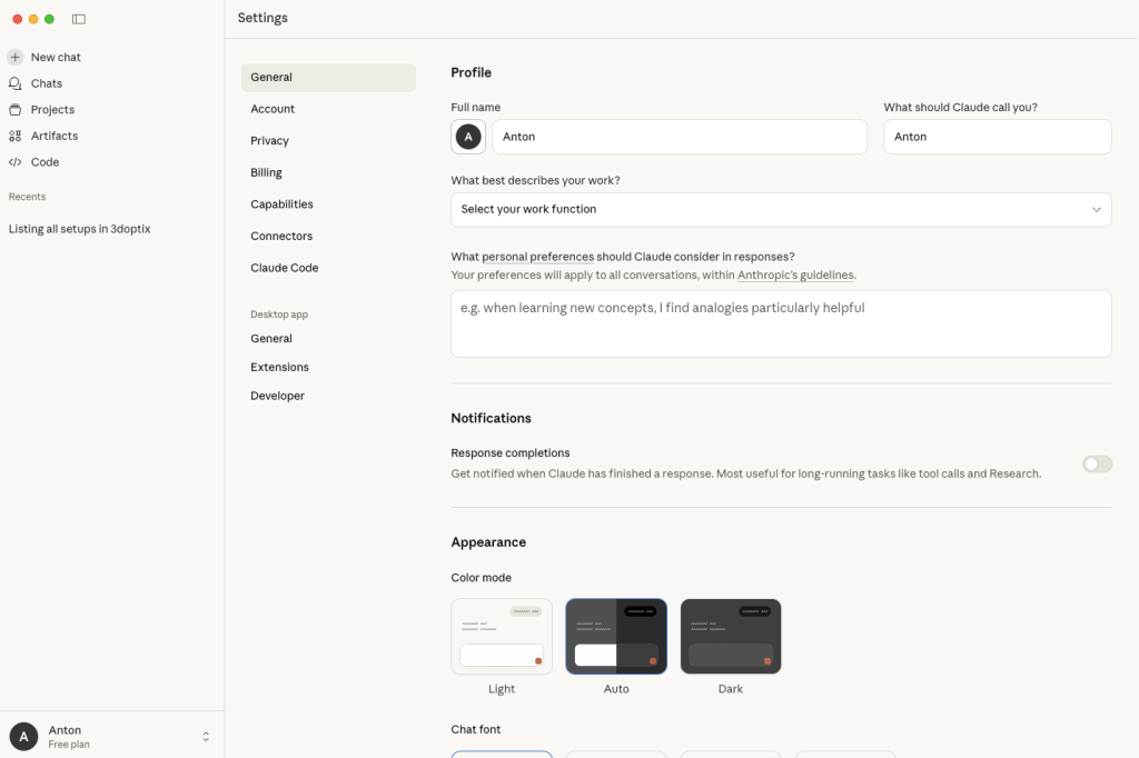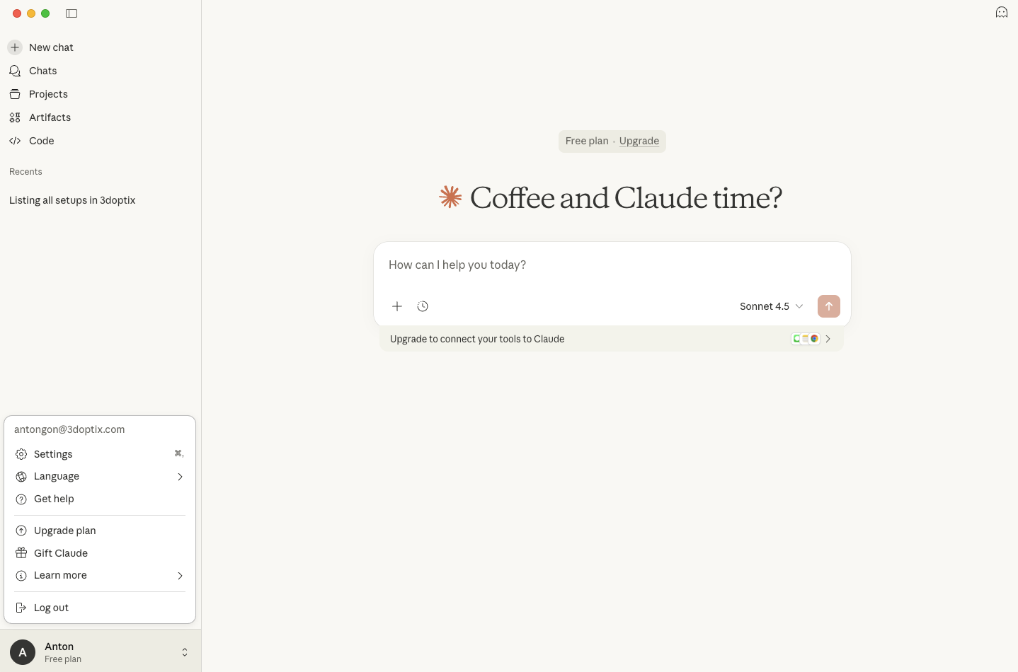 OptiGuide is 3Doptix’s MCP integration. With OptiGuide enabled, Claude can use the same capabilities exposed by the 3Doptix API / SDK, such as: